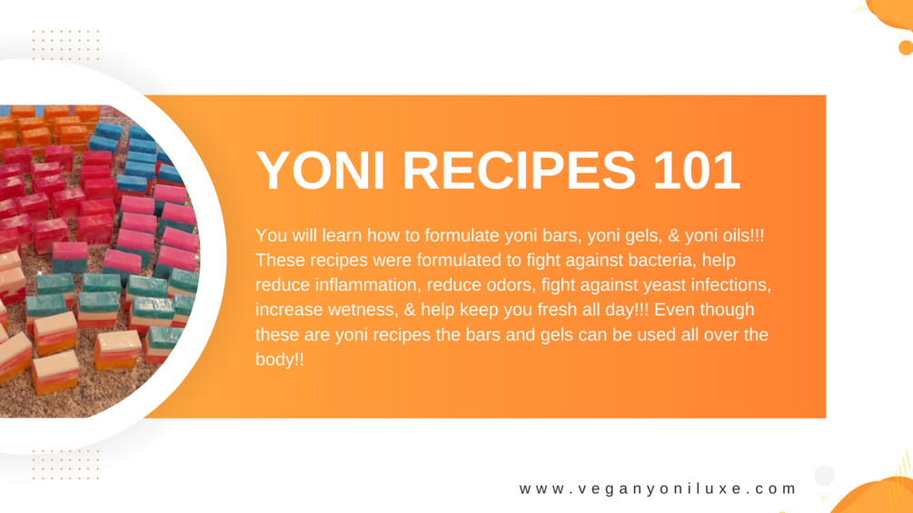 I provide 3 different recipes to help you formulate your yoni products. Yoni Bar, Yoni Gel, & Yoni Oil recipes will be included! These recipes will help you formulate your yoni products! All the products are effective and will help reduce cramps, less yeast infections, eliminates odors, fights agains bacterias, increase wetness, & will keep you fresh all day!!!